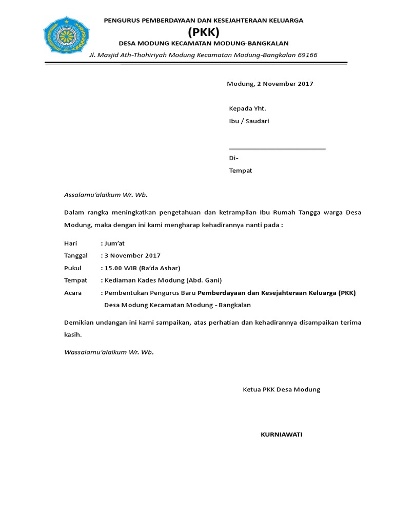 Contoh surat undangan pkk pdf. Pada kali ini saya tidak akan membahas tentang PKK lebih lengkap tetapi saya akan menyajikan sebuah contoh surat Pertemuan Rapat sederhana untuk bahan referensi kita membuat surat yang baik dan benar. Contoh Undangan Khitanan Pdf HD Gratis. 28 Full PDFs related to this paper.