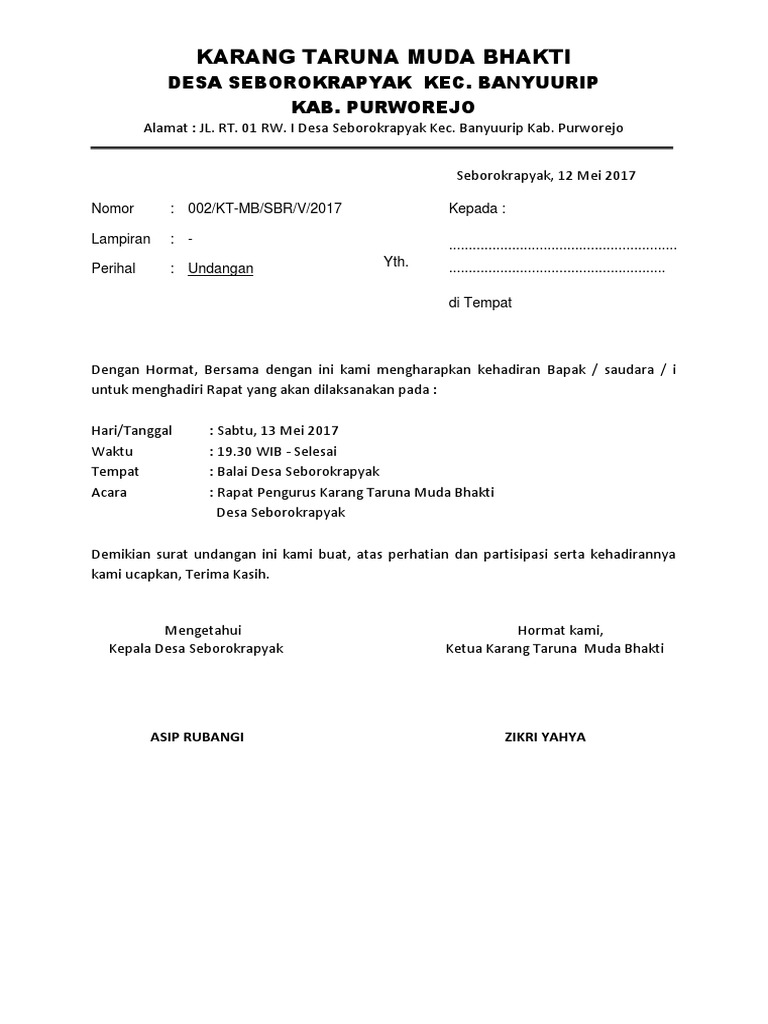 Pkk Rt 15 Undangan Rapat Pengurus Kami menyediakan contoh tesis dalam format pdf dan ms word. Download Full PDF Package. Download contoh surat undangan karang tarunadocx.