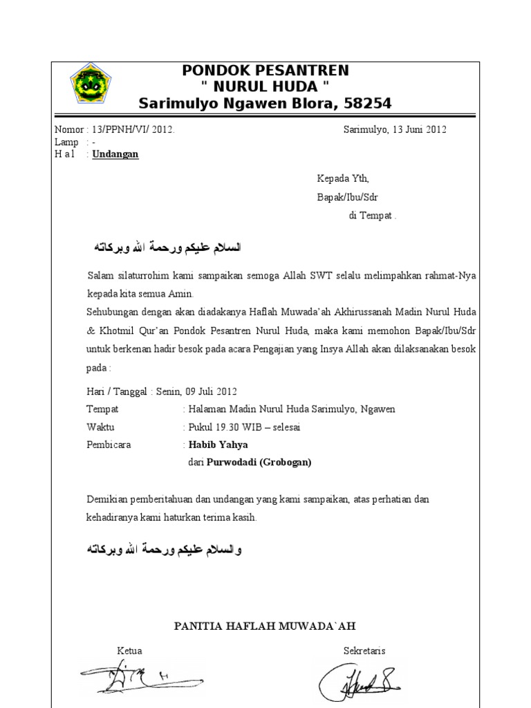 Contoh surat undangan haflah. 90 Contoh Undangan Pengajian Umum Haflah Akhirussanah Terupdate. 90 Contoh Undangan Pengajian Umum Haflah Akhirussanah Terupdate Contoh undangan pernikahan yang berhias tumbuhan.
